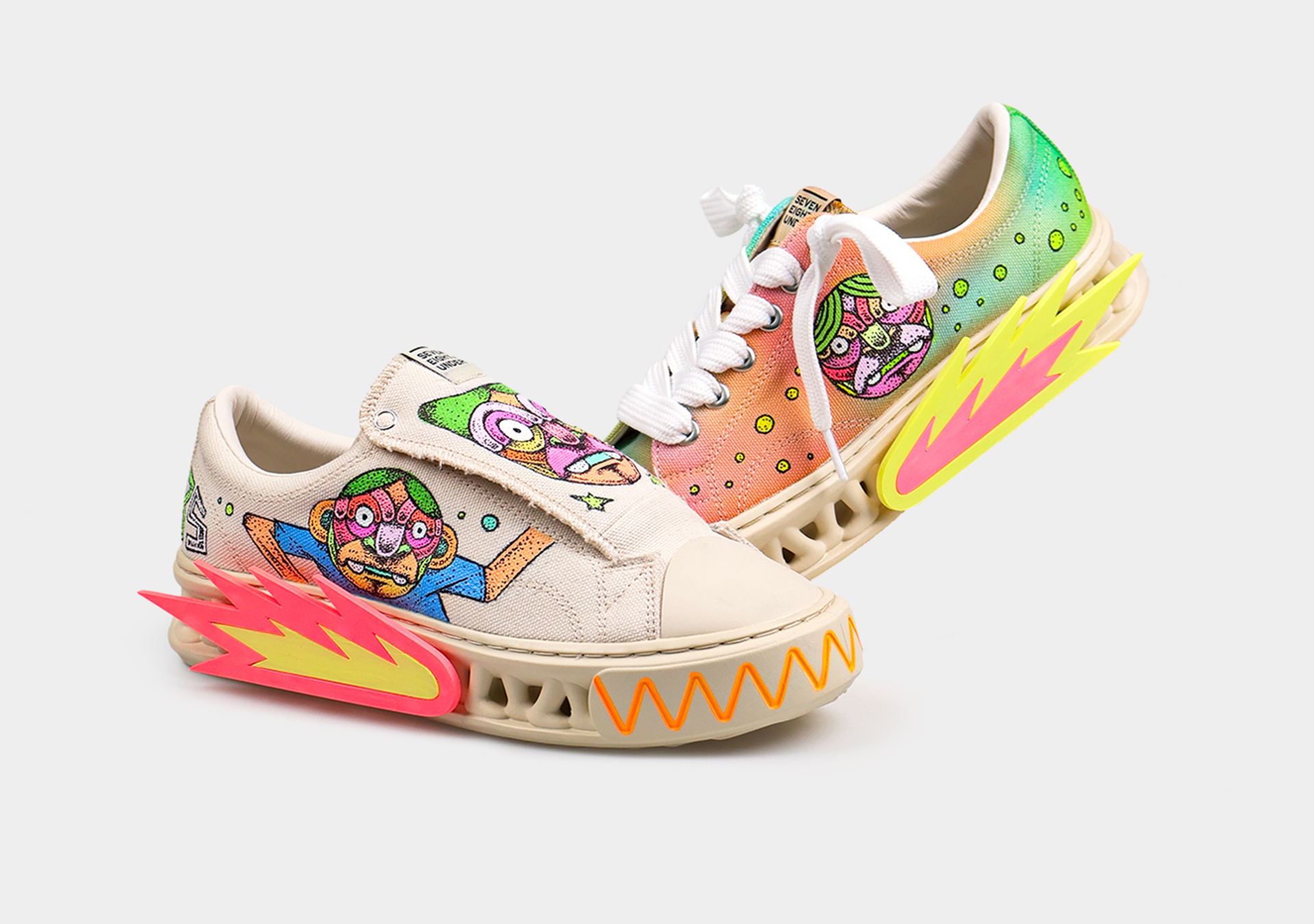 The theme of this collaboration was “energy within imperfection.” I combined the brand’s unique sensibility with my own visual language to express the raw human energy through color and form. The flame sculpture attached to the midsole embodies the idea of KEEP GOING — the act of running forward. Through this project, I was able to experience firsthand the powerful synergy that emerges when art and fashion come together.
